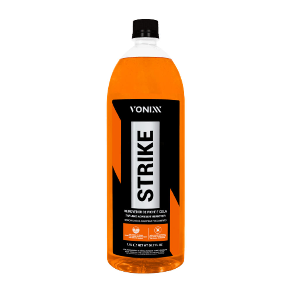 REMOVEDOR DE ALCATRÃO E COLAS STRIKE é um produto de fórmula balanceada que age na remoção alcatrão e da maioria de resíduos de colas de adesivos e etiquetas autocolantes em geral.